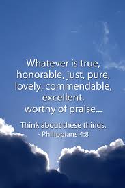 Set your mind on what is good, pure, lovely, just true, of good report (Phil 4:8)